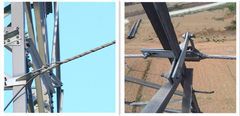 Fastening fixture for tower: a series of fastening fixture for tower is designed according to the dimension of tower material at the hanging point of fiber optic cable to realize the connection and installation of tension-resistant wire clip and suspension wire clip with iron tower Fastening fixture for rod: according to the cable hanging point rod diameter design series of fastening